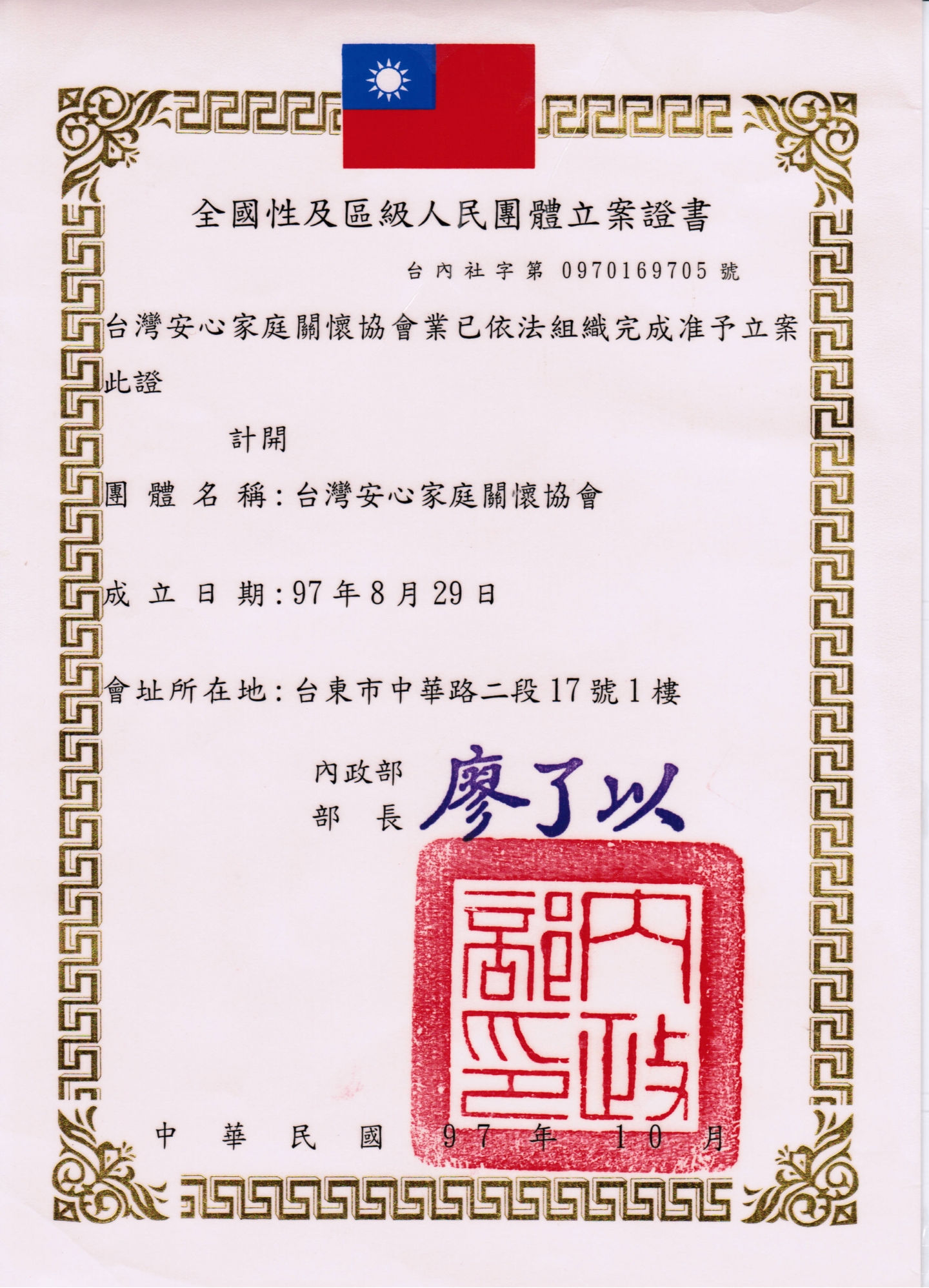 ※ 2008-創辦社團法人台灣安心家庭關懷協會